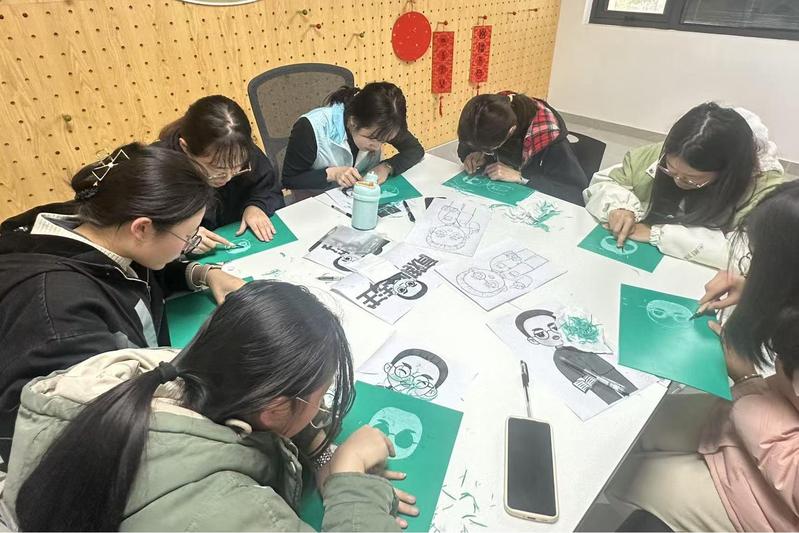 美术学院于G区“美育空间”开展“教育之光·版画映陶”活动,以艺术创作对话陶行知教育思想。非遗社团“小先生”展示主题版画示范作品,学子们执刻刀雕琢陶行知卡通形象,从生涩到娴熟,木板上逐渐浮现先生的和蔼面容与教育实践场景。活动现场互动热烈,一幅幅稚拙却真挚的作品,让“生活即教育”的理念跃然纸上。这场融合艺术与教育的实践,为校庆增添了一抹鲜活的文化亮色。