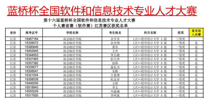 近日,由工业和信息化部人才交流中心主办的第十六届“蓝桥杯”全国软件人才大赛省赛成绩揭晓,我校师生团队表现出色,15人荣获一等奖并晋级全国总决赛,24人荣获二等奖,61人荣获三等奖,总计收获100项大奖,获奖数量和入围国赛人数均实现历史突破。