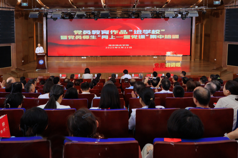 9月23日,省市党员教育作品“进学校”暨党员师生“同上一堂课”集中培训在我校方山校区工科楼报告厅顺利举办。江苏省委组织部党员教育中心副主任闫伟、南京市委党建办主任杨花伟、南京市纪委监委派驻市教育局纪检监察组组长、市委教育工委委员何俊妍,校党委书记张策华、党委副书记易永建出席活动。省委组织部、市委组织部、市委教育工委相关处室负责同志,全市教育系统党员代表以及我校各二级党组织党员师生代表300余人现场参加培训,我校其他党员师生通过线上直播方式在各分课堂同步参训。