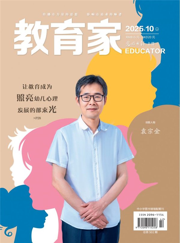 近日,我校幼儿师范学院院长袁宗金教授荣登光明日报社主管主办的教育主流媒体《教育家》杂志10月刊封面人物,杂志刊发了对袁宗金专访文章《让教育成为照亮幼儿心理发展的那束光》。作为南京晓庄学院培养的“全国优秀教师”,袁宗金教授在专访中系统阐释了其在幼儿心理健康教育领域的深入思考与实践探索,充分彰显了我校在传承陶行知教育思想、服务基础教育发展方面的育人成效。