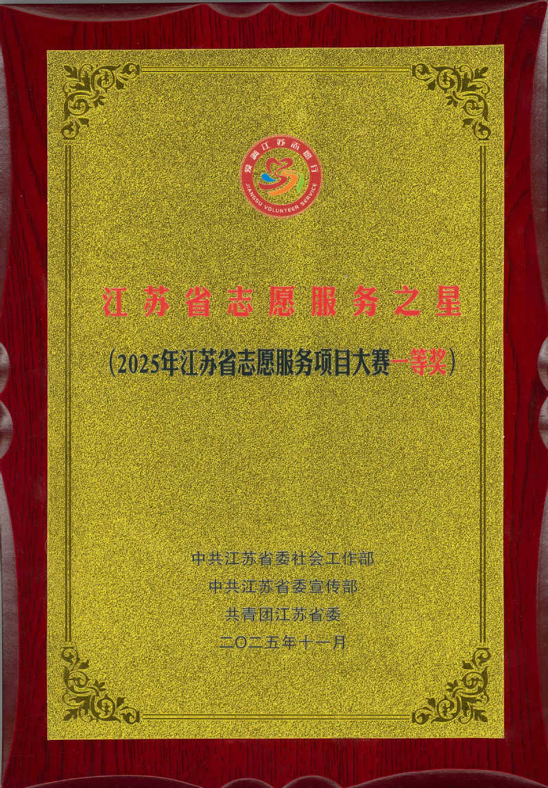 近日,由中共江苏省委社会工作部、中共江苏省委宣传部、共青团江苏省委联合主办的2025年“江苏省志愿服务之星”宣传活动暨江苏省志愿服务项目大赛结果揭晓并举行了颁奖仪式。经南京市委社会工作部择优推荐、决赛路演和现场答辩等环节的激烈角逐,我校申报的“润心育人——陶老师工作站未成年人心理健康志愿服务项目”凭借深厚的服务积淀、创新的服务模式和显著的社会效益,在全省众多优秀项目中脱颖而出,荣获大赛一等奖,并被授予“江苏省志愿服务之星”荣誉称号。