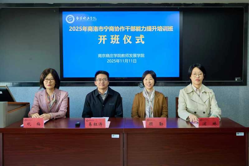 11月11日,2025年商洛市宁商协作干部能力提升培训班在我校莫愁校区顺利开班。南京市发改委支援合作处处长易红涛、我校副校长顾勤出席,我校教师教师发展学院相关负责人,以及来自商洛市与宁商协作工作相关单位的50名干部参加了开班仪式。