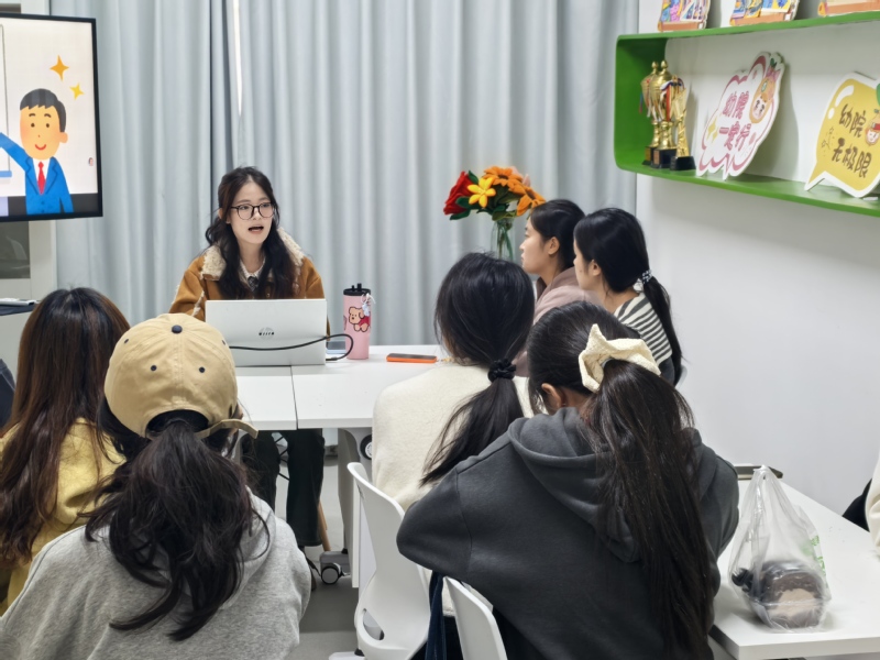 访谈中,马雨晗结合自身在优力可趣学少儿英语教培机构的从业经历,从行业趋势、能力储备、职场心态三个维度展开分享。她指出,当前教培行业正朝着素质化、特色化方向转型,建议学弟学妹在校期间夯实专业基础,积极参与社会实践,提升沟通协作、创新应变等综合能力。针对职业规划,她强调“理性评估个人优势与行业需求的匹配度”,并鼓励学生打破地域与专业局限,主动探索多元发展路径。