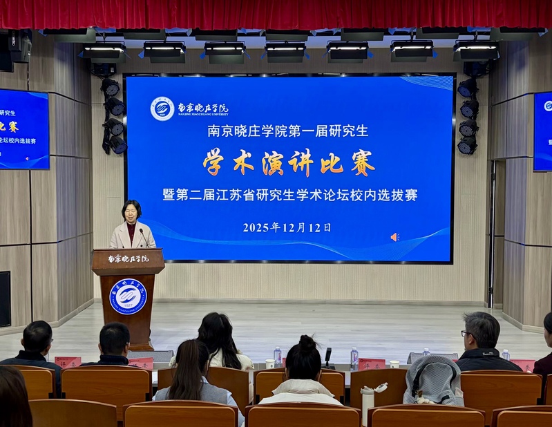 12月12日,我校第一届研究生学术演讲比赛暨第二届江苏省研究生学术论坛校内选拔赛在行知楼100成功举办。副校长顾勤、评委专家、研究生处相关负责人及各学院研究生代表齐聚现场,共同见证这场学术与思维碰撞的精彩赛事。研究生处处长朱智武主持开场并介绍赛事背景与组织工作。