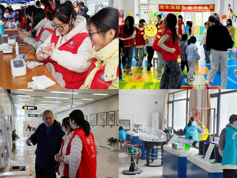 走进社区实践,助力为民服务。商学院组织团学骨干、学生党员前往逸夫医院,开展药房服务、检查接引、病房陪伴等志愿帮扶;旅游与社会管理学院联合社工站为社区儿童开设兴趣课堂,开展阳光护童行动;音乐学院志愿者在社区开展房屋清理等便民服务,贴心陪伴老人话家常。他们用爱心公益活动,将志愿温暖传递至社区,用温情服务诠释为民初心。