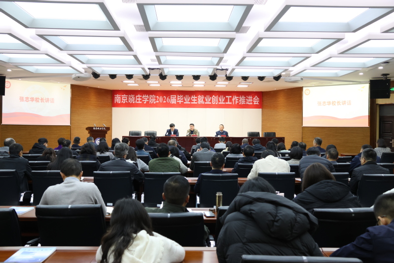 3月24日,南京晓庄学院2026届毕业生就业创业工作推进会在方山校区召开。校长张志华出席会议并讲话,副校长王本余传达了上级会议和通知精神,副校长刘光祥通报了我校2026届毕业生就业工作基本情况并部署下一阶段重点工作。相关职能部门负责人、各二级学院党政负责人、分管教学工作的负责人及毕业班辅导员等参加会议。