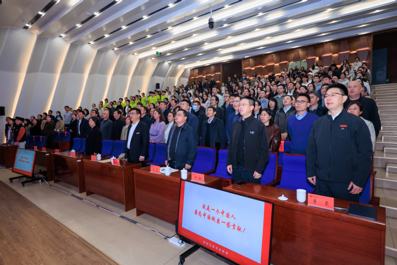 报告会尾声,张策华带领全场师生共同诵读120年前陶行知在崇一学堂求学时写下的誓言——“我是一个中国人,要为中国做出一些贡献。”全场师生铿锵跟诵,誓言声声激荡会场、字字句句掷地有声,这既是对先生的深情致敬,更是晓庄人许下的庄严承诺。随后,全场齐唱校歌《锄头舞歌》,激昂歌声将报告会推向高潮。