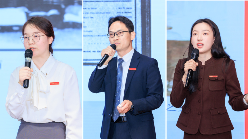 三位师生代表随后从不同维度生动诠释陶行知精神的时代内涵。何文秋以《陶行知:教育为公的爱国卫士》为题,深情讲述陶行知先生终生践行教育救国理想、创办晓庄试验乡村师范、投身抗战救国的感人故事,生动诠释其“教育为公、文化为公”的崇高追求。张寒梅以《陶行知:教育创新的先锋力量》为题,回顾陶行知勇于创新、积极创造的奋斗历程,号召青年教师立足育人使命,恪守师德师风、深耕三尺讲台,为党育人、为国育才。丁可以《陶行知:教育启智的奉献先驱》为题,满怀崇敬追忆先生“捧着一颗心来,不带半根草去”的大爱奉献精神,并代表晓庄学子庄严承诺:传承行知精神,用青春行动续写先生未尽的教育理想。