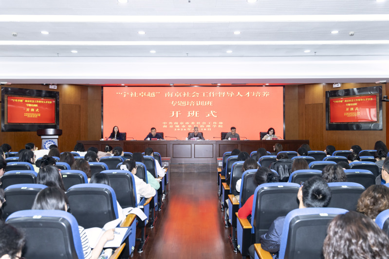 4月20日,“宁社卓越”南京社会工作督导人才培养专题培训班在我校莫愁校区开班。南京市委社会工作部部长、市委“两新”工委书记滕涛,北京大学社会学系教授、中国社会工作教育协会名誉会长、中国社会工作学会会长王思斌,市委社会工作部副部长曲思泽,社会工作人才和志愿服务处相关负责人,以及我校教师发展学院、南京城市基层治理学院相关负责人出席开班式。来自全市各区、各领域的141名优秀社会工作者齐聚我校,开启为期8天的集中培训学习。
