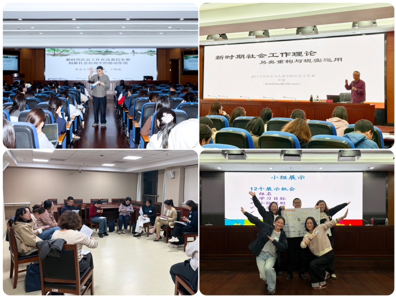 开班当天,王思斌以“新时期社会工作在改善民生和创新社会治理中的功能作用”为题作首场讲座。厦门大学社会工作系教授、中国社会工作教育协会副理事长童敏围绕“新时期专业社会工作理论的另类重构与现实运用”进行专题分享。培训采用“昼学+夜研”相结合的方式,中国社会工作联合会社会工作师委员会总干事胡剑带领全体学员开展体验式学习,在小组面谈和分组讨论环节,学员们围绕一线督导实务中的难点与堵点,交流实操技巧,相互启发、彼此赋能,现场互动热烈。