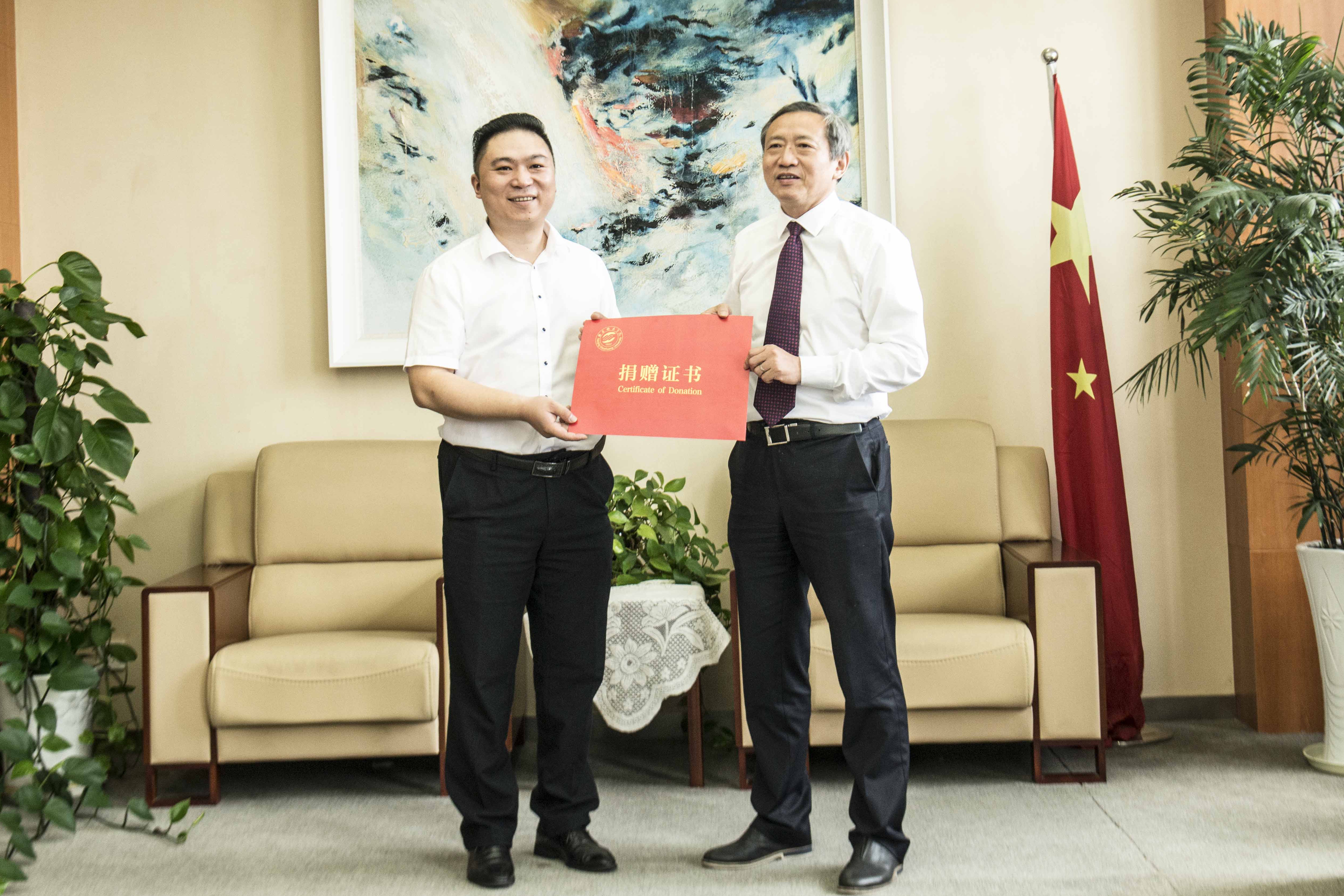 随后,王红雷校友向各位校领导汇报了自己毕业后从政、创业的经历及企业目前的发展情况。他说:毕业20年来,一直以实际行动践行着母校“学做真人”的校风,对母校有着深厚的感情。现在,自己的事业小有成绩,希望能为母校的发展建设贡献一份力量。在现场,王红雷校友以个人名义向母校校友基金捐赠10万元,并承诺旗下企业每年为母校学子提供50个实习岗位和15个毕业生就业工作岗位,许校长亲自给王红雷校友颁发了捐赠证书,赠送了刻有王红雷姓名的专属印章作为纪念。