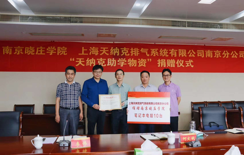 校友会办公室负责人代表学校接受了上海天纳克排气系统有限公司南京分公司的捐赠,并向该公司颁发了捐赠证书,嘉宾为受助学生发放了笔记本电脑。