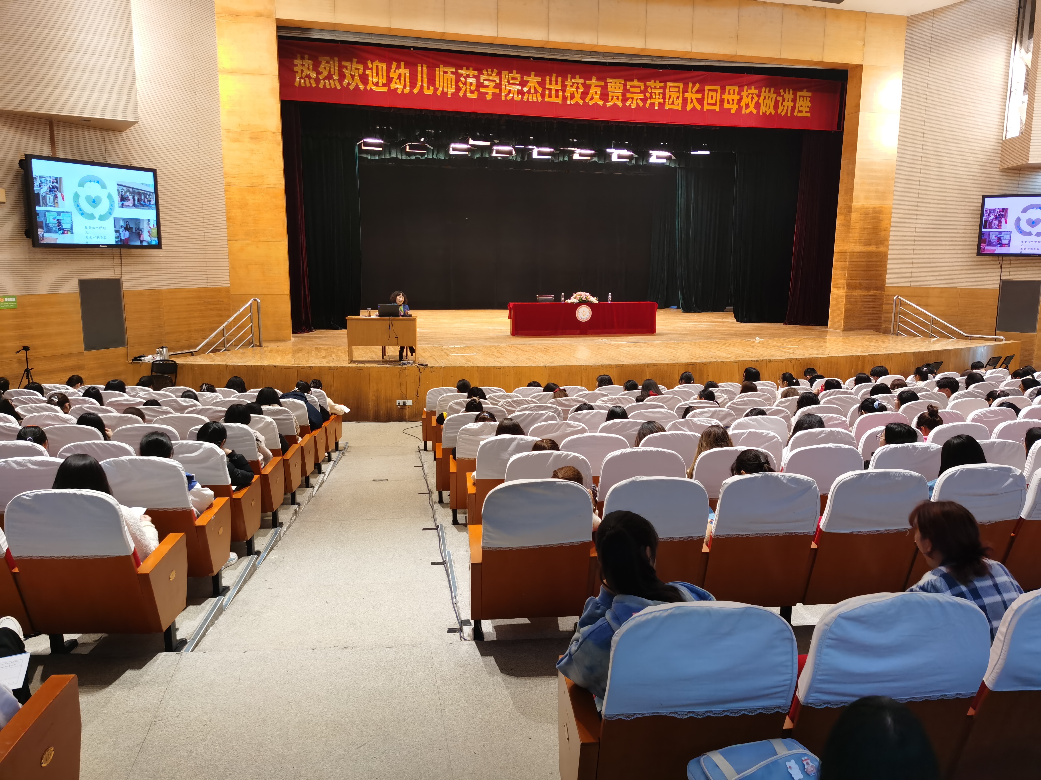 值南京晓庄学院94周年校庆到来之际,3月15日下午,我院特邀学院优秀校友、江苏省特级教师、南京市中华路幼儿园园长贾宗萍回到母校,为我院学子开设讲座,院长袁宗金、院党总支副书记杨潇、全体辅导员以及300余名学生参加讲座。